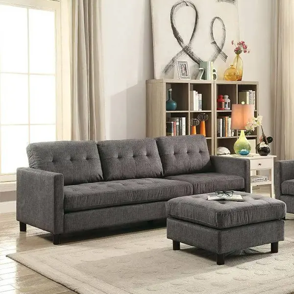 Your living area will feel more contemporary and cozy with this 4 Piece Sectional Sofa covered in fabric. This 4 Piece Sectional Sofa has squared legs, track arms, a loose seat and back cushion, and a multipurpose ottoman that can be used as a chair or chaise. presenting to you a comfortable setting for hosting family and friends.