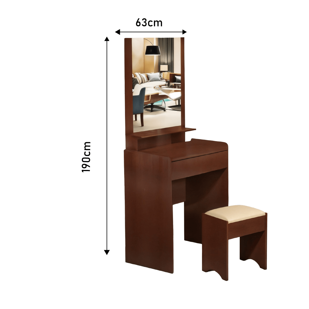 Equipped with smooth drawers for convenient storage, this dressing table keeps your cosmetics, jewelry, and essentials neatly arranged. The large mirror adds brightness and depth to your room while making your daily routine effortless and enjoyable.
