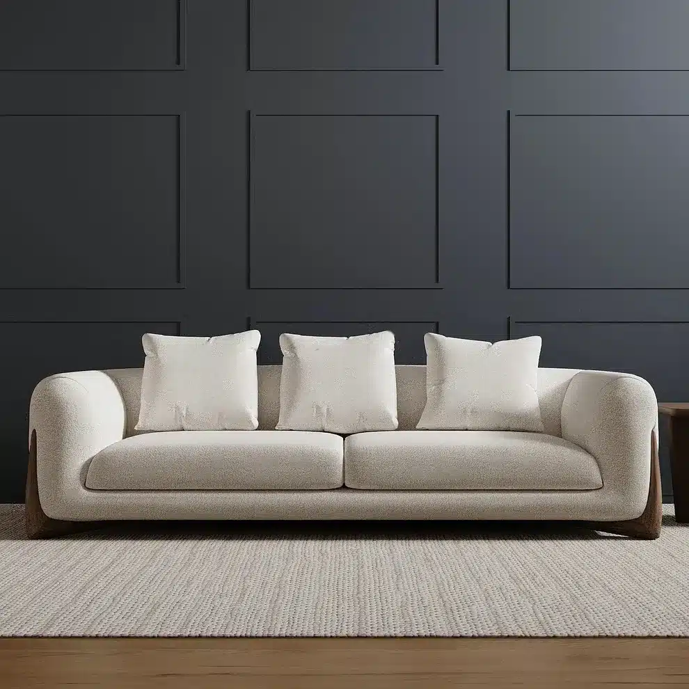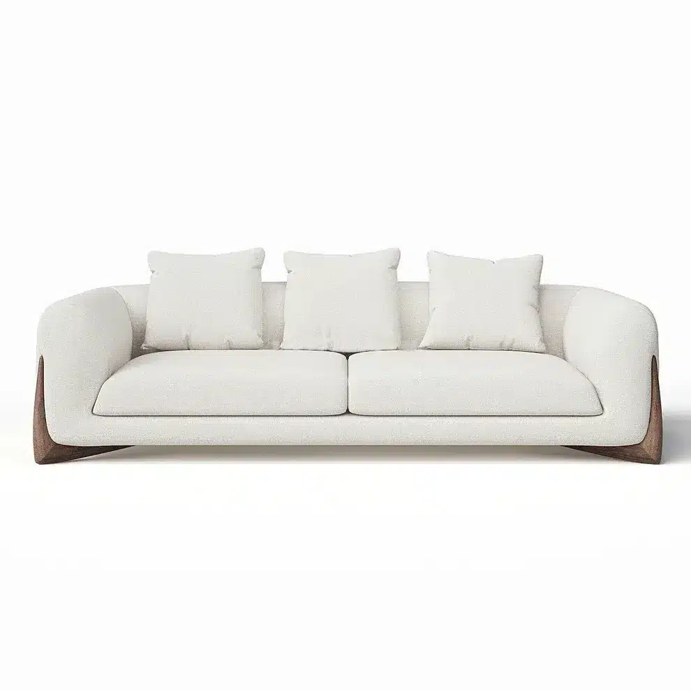 Elevate your living space with Capital 3 seater sofa Urban Loft Style Three-Seater Sofa, where contemporary design meets everyday comfort. Crafted with a solid wood frame and distinctive boomerang-shaped legs in a natural finish, this sofa adds a bold, architectural edge to your home.