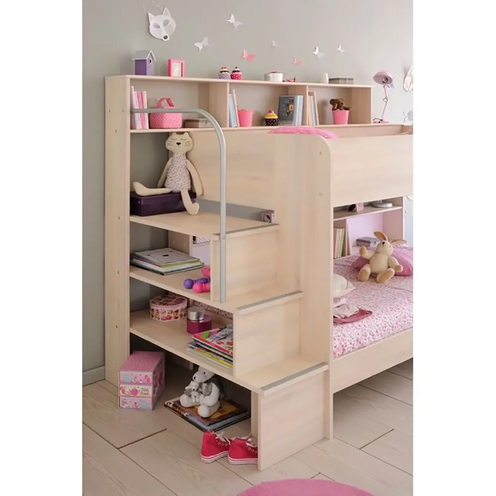 Designed with safety rails and sturdy storage steps, kids can climb up comfortably while enjoying built-in shelving for books, toys, and décor. The clever cabin-style structure maximizes floor space, making it perfect for compact rooms or shared spaces.