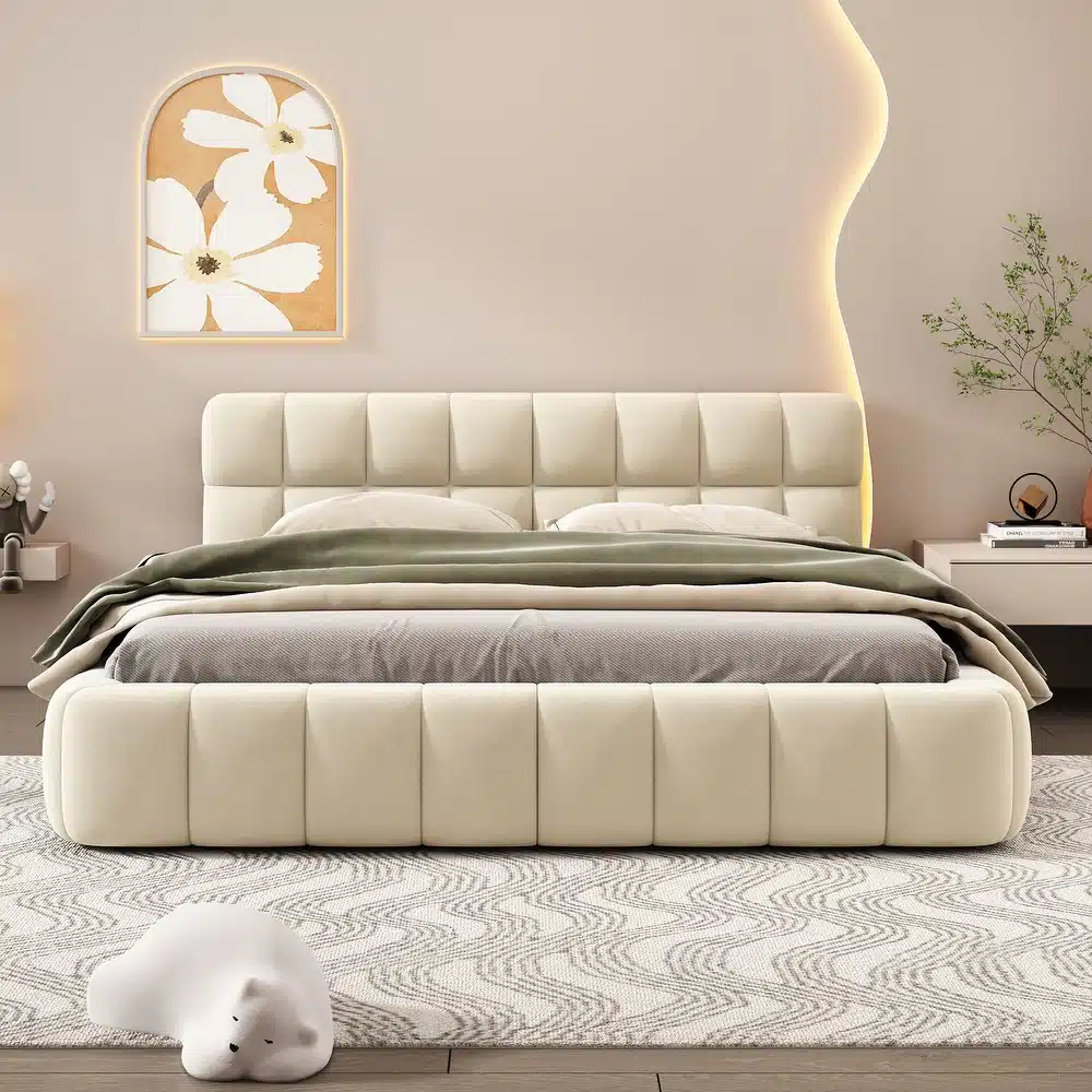 Velvet Upholstered Low Profile Bed Frame – Modern bed design