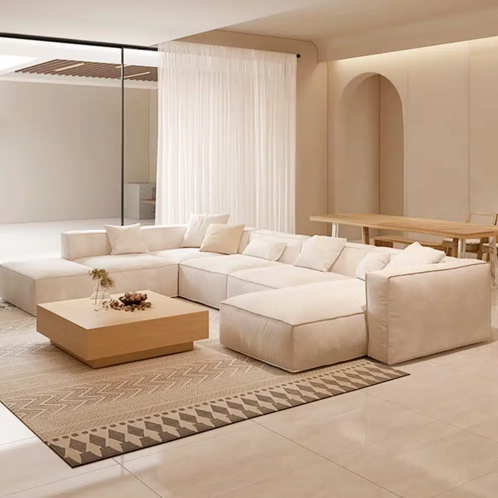 The Modern Square-Arm Luxury Modular Sofa combines contemporary style with eco-friendly craftsmanship, offering both comfort and versatility. Upholstered in soft yet durable linen fabric, it is available in a variety of colors to complement your home décor.