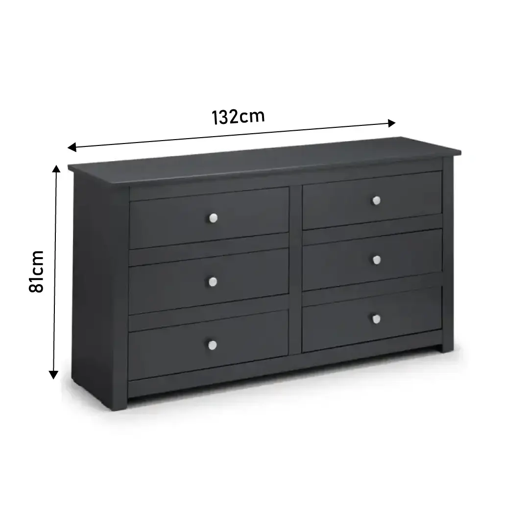 Mario 6 Drawer Chest: spacious storage, modern style. Perfect for bedrooms.