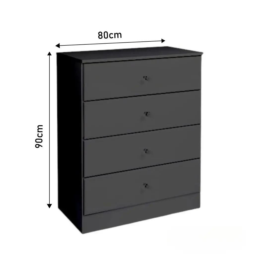 Crafted from high-quality laminated MDF wood, the chest features four spacious drawers with smooth metal runners, ideal for storing clothes, accessories, or essentials while maintaining an organized space. The matte finish and natural wood texture add warmth and charm, making it both a decorative and functional element in your home.