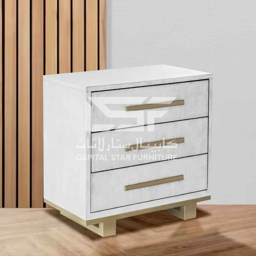 Enhance your bedroom decor with the striking Sinclair Side Table. It offers a wealth of storage space with its three deep pullout drawers, providing both an elegant design and a functional place to store and organize your bedroom essentials. This versatile piece serves perfectly as a side table, nightstand, or bedside table, adding style and utility to your space.