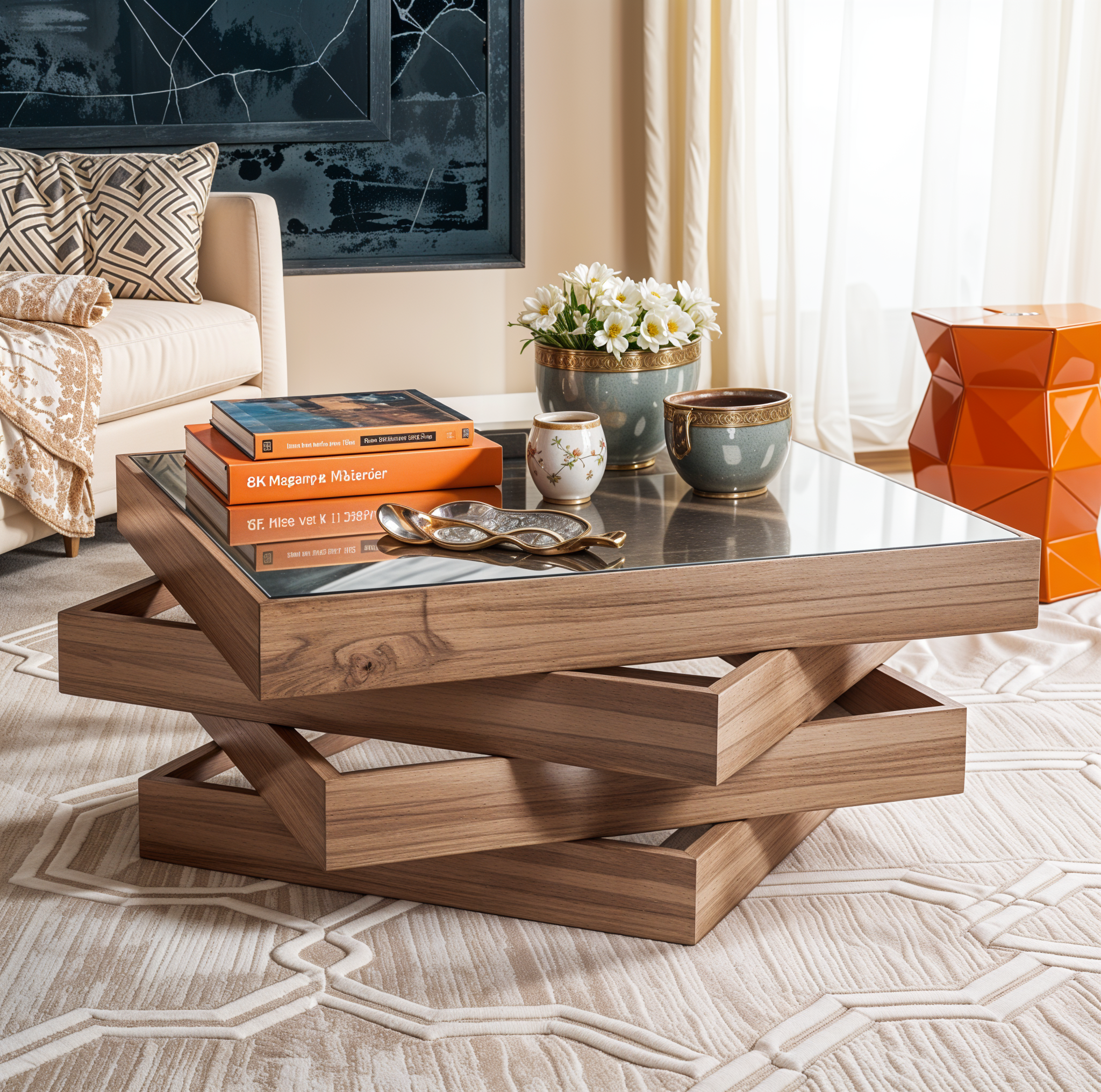 Elevate your space with Star Glass Top Coffee Table’s reflective surface & chic design, perfect for glamorous decor & modern interiors.