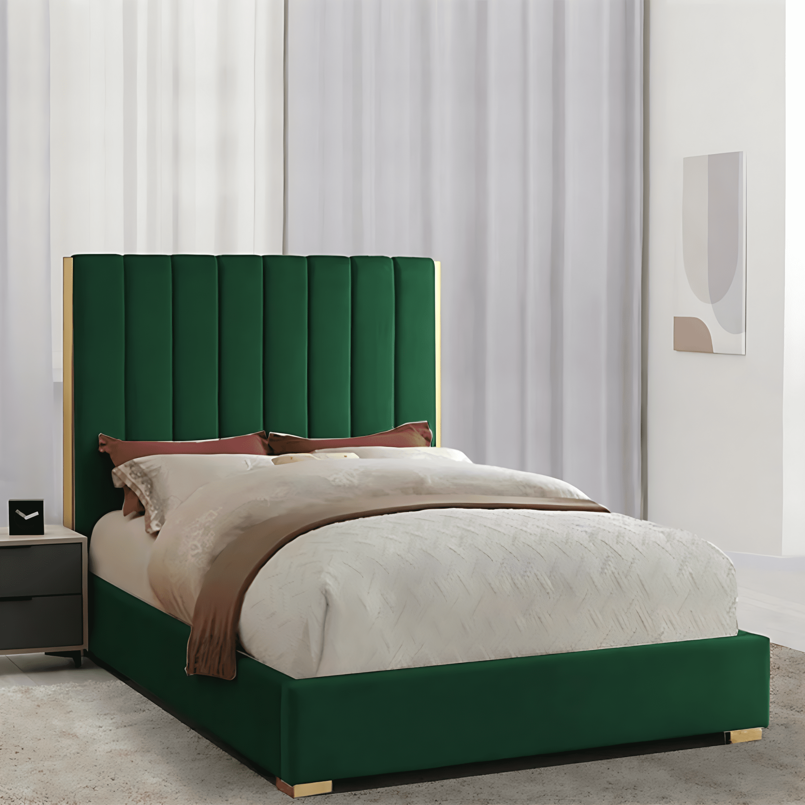 Crafted with a solid wooden frame and upholstered in premium velvet or fabric, the Kingdom Upholstered Bed offers both durability and refined beauty. Its classic silhouette with modern detailing makes it suitable for a variety of interiors — from contemporary spaces to luxurious villas.